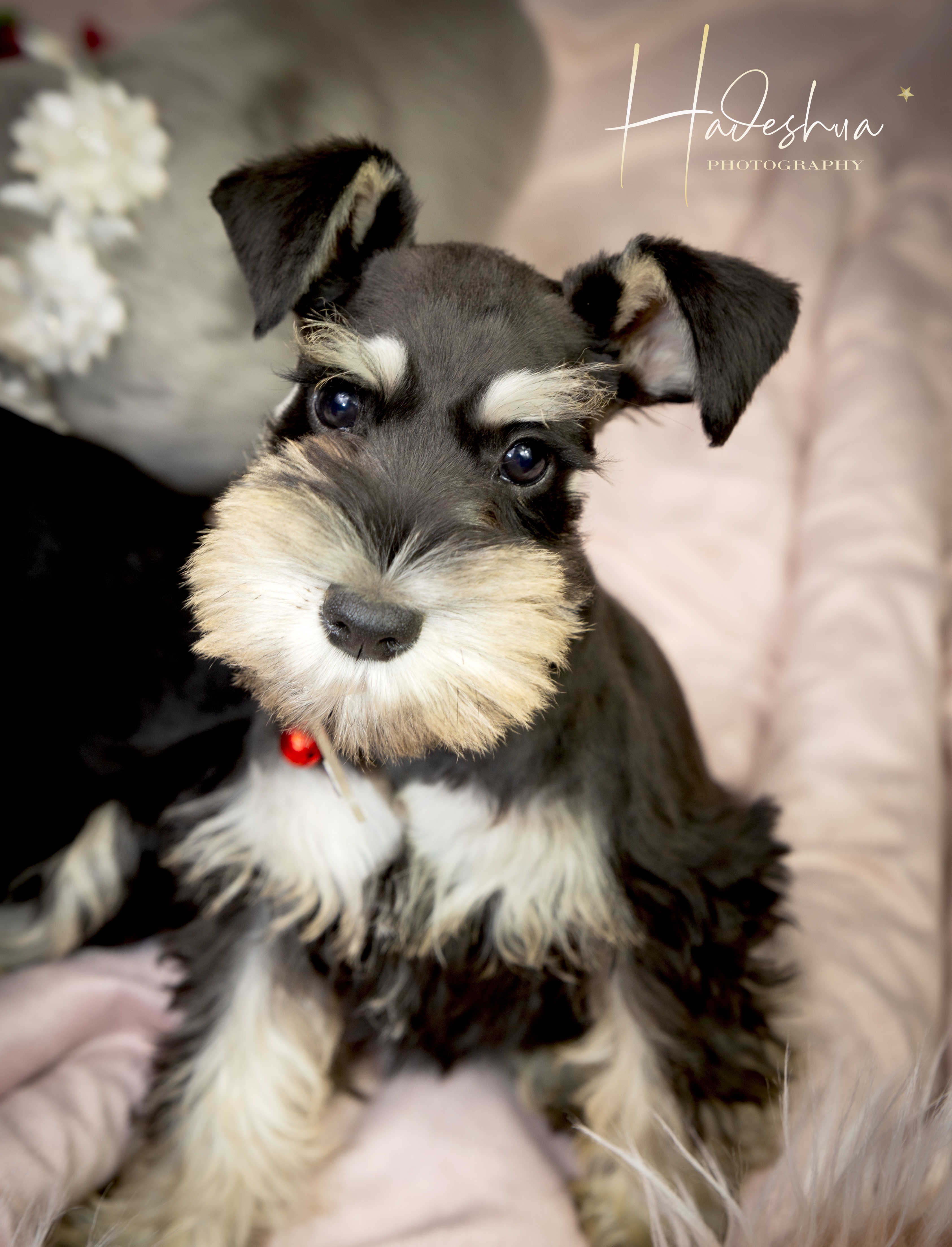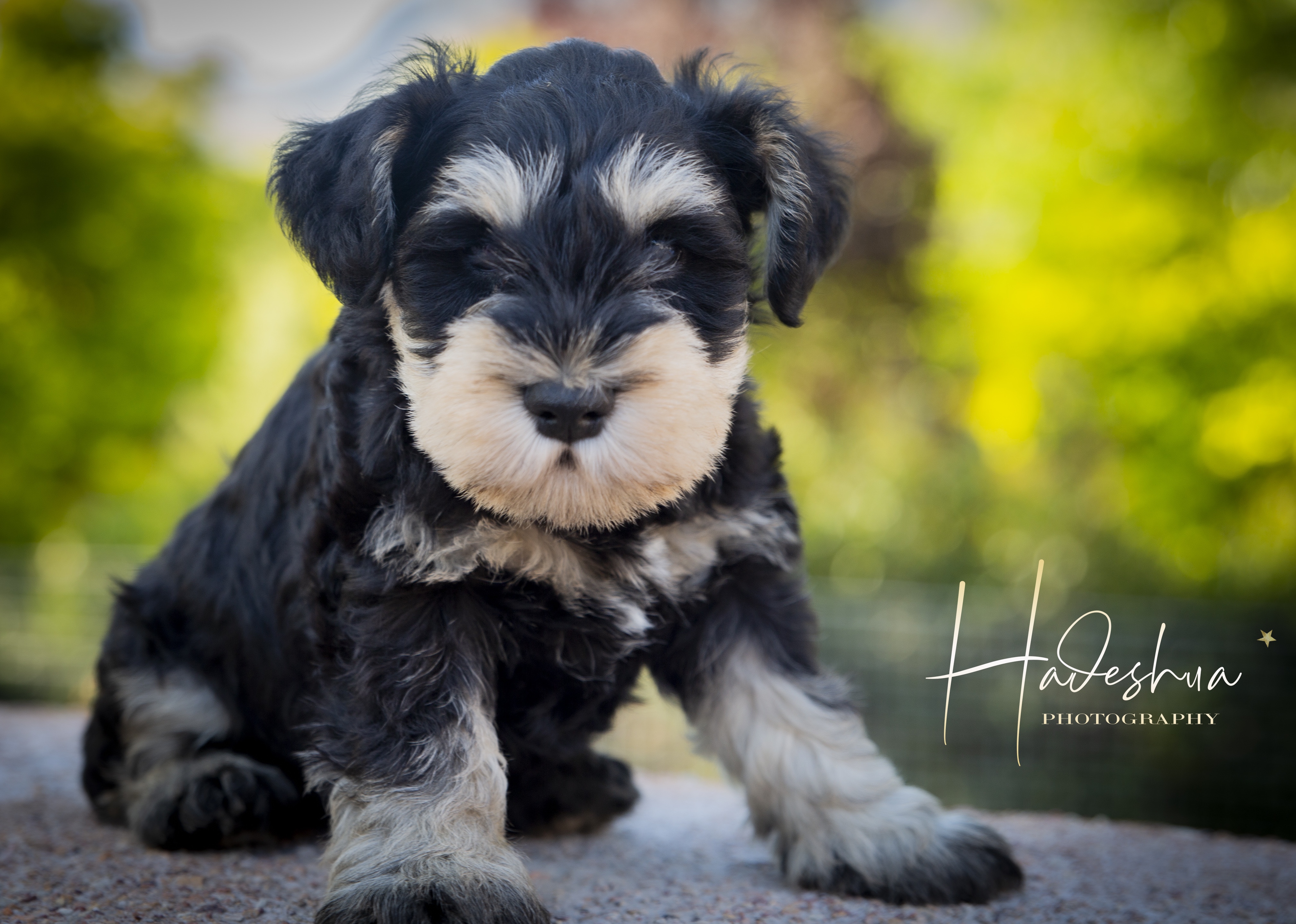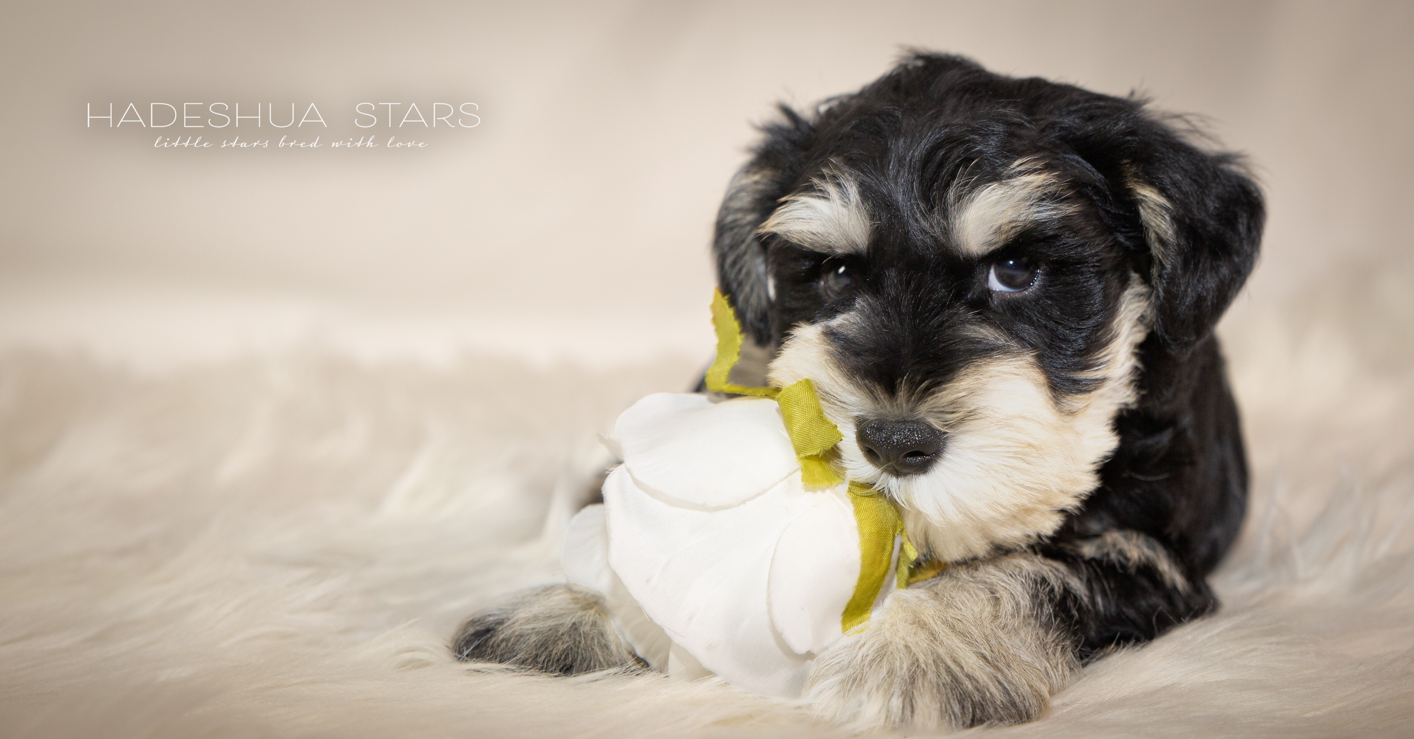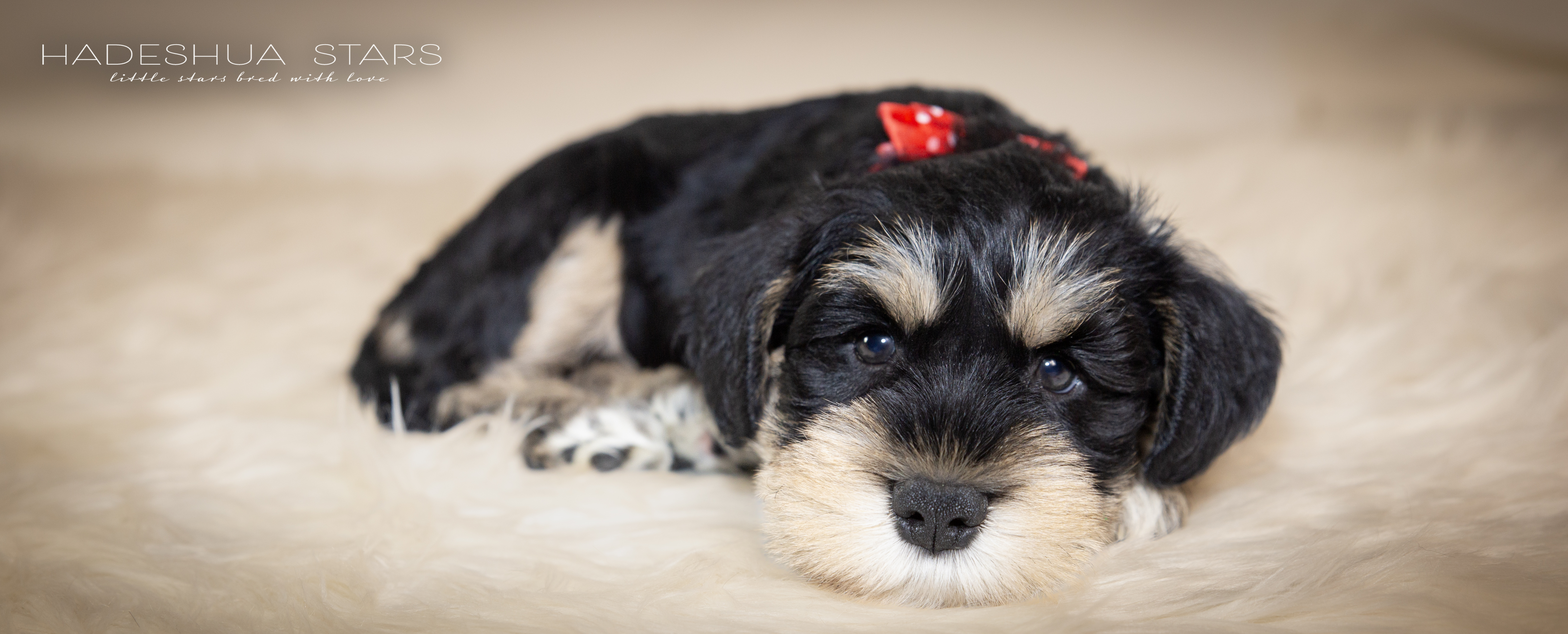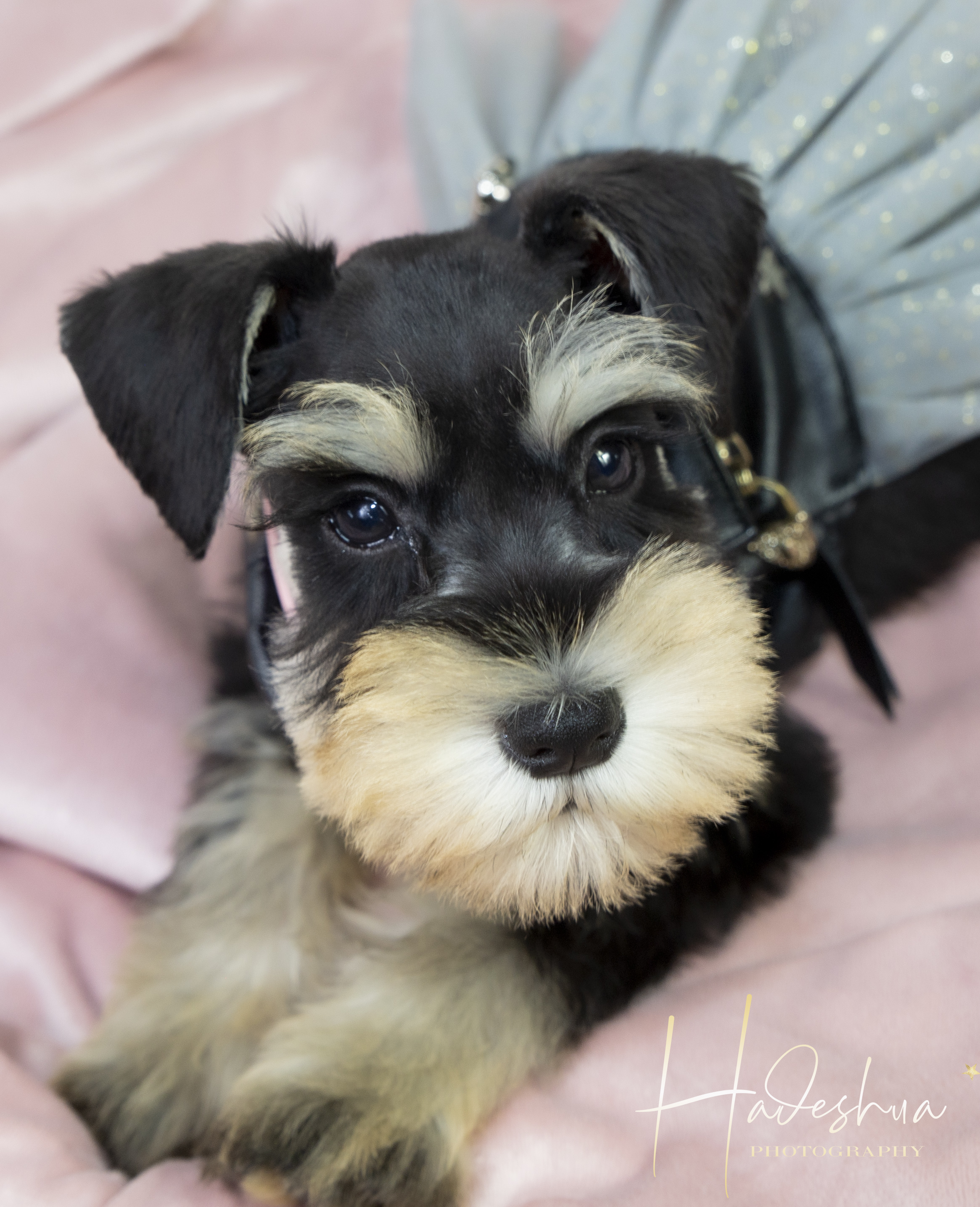 Oh, my utmost soft-spot! Schnauzer puppies are born as extremely intelligent, sensitive and emotional beings. They need so much TLC... not only from mom, but also from their human-mom. They need human hands caressing and loving them, starting to socialize them from a very young age.