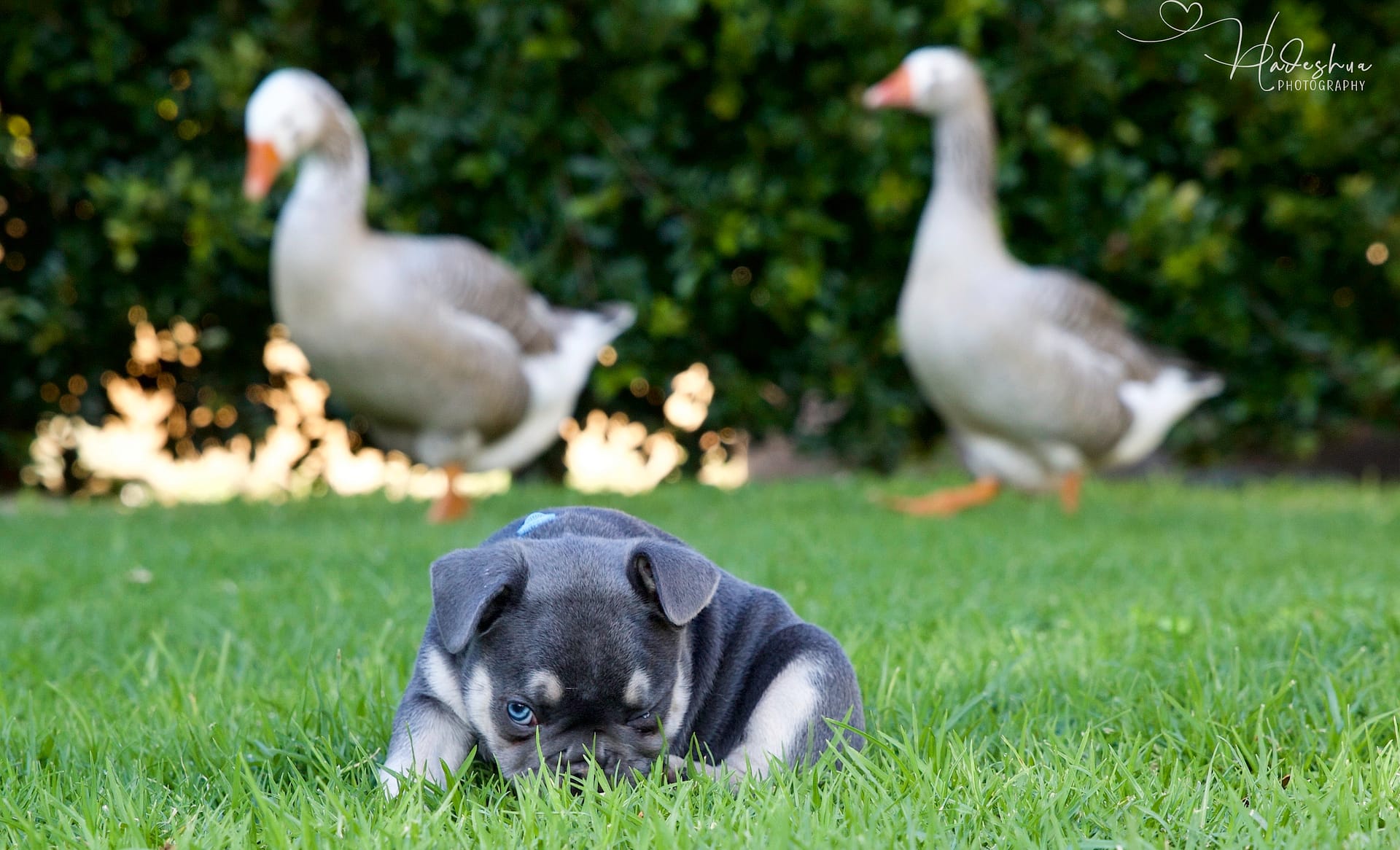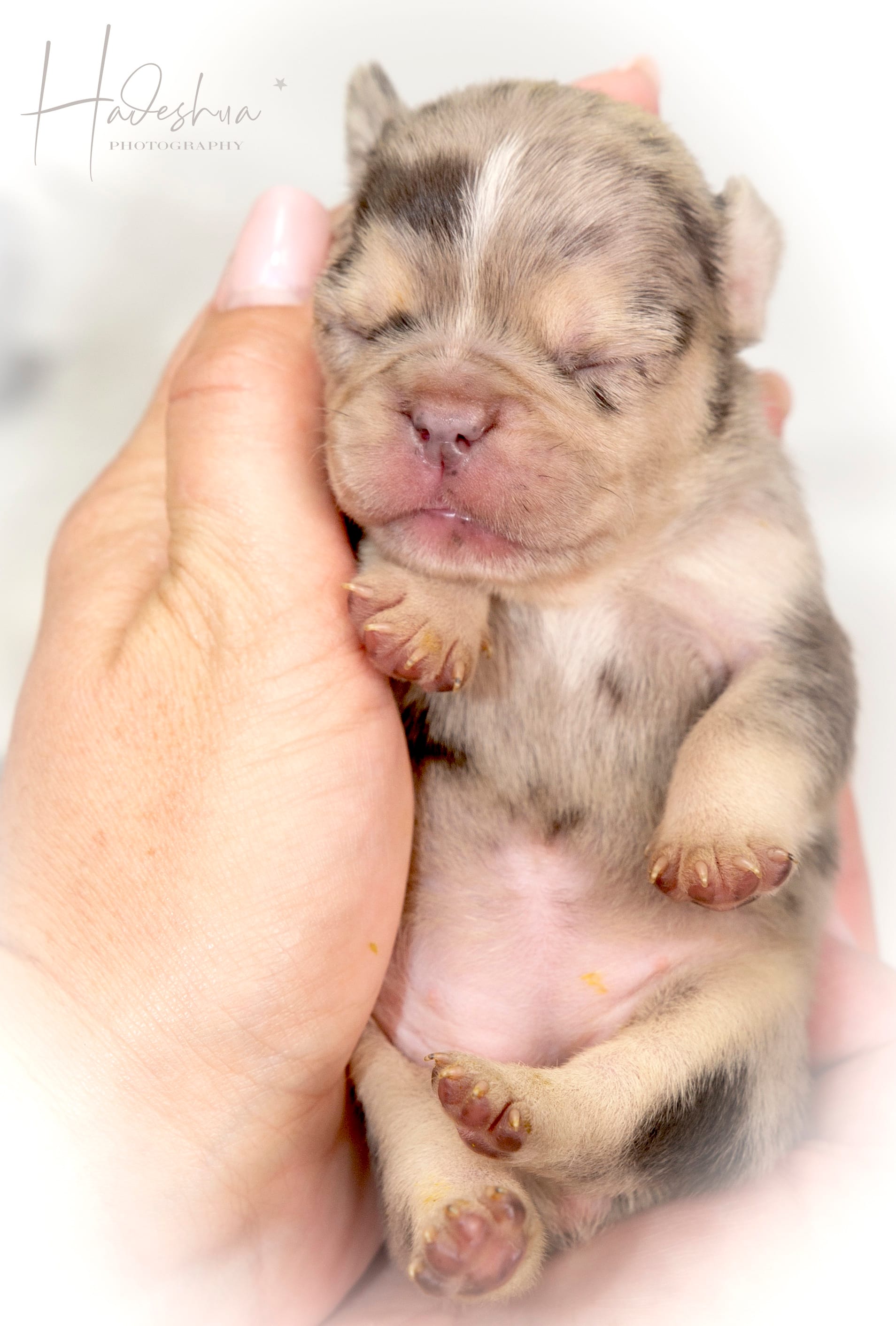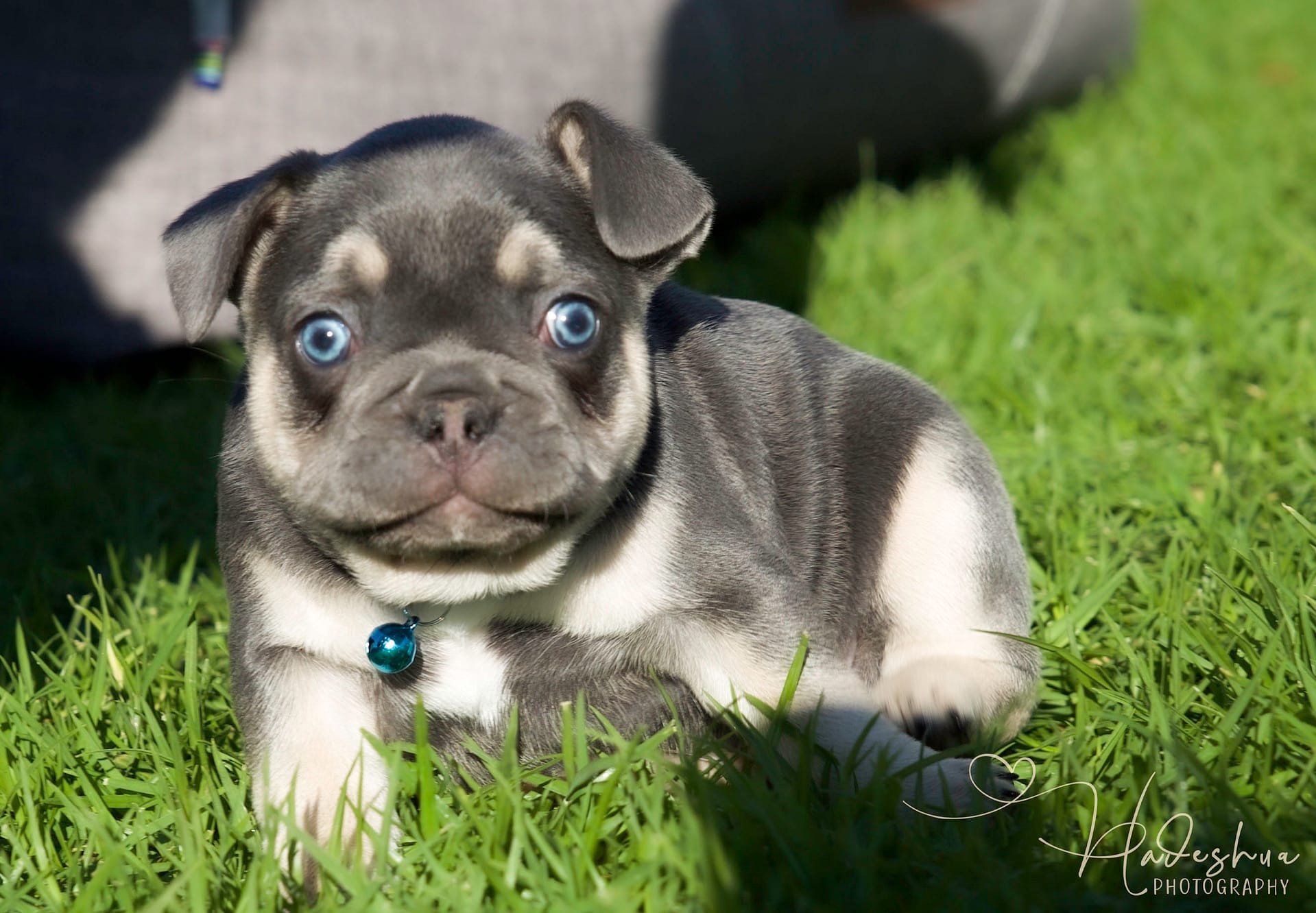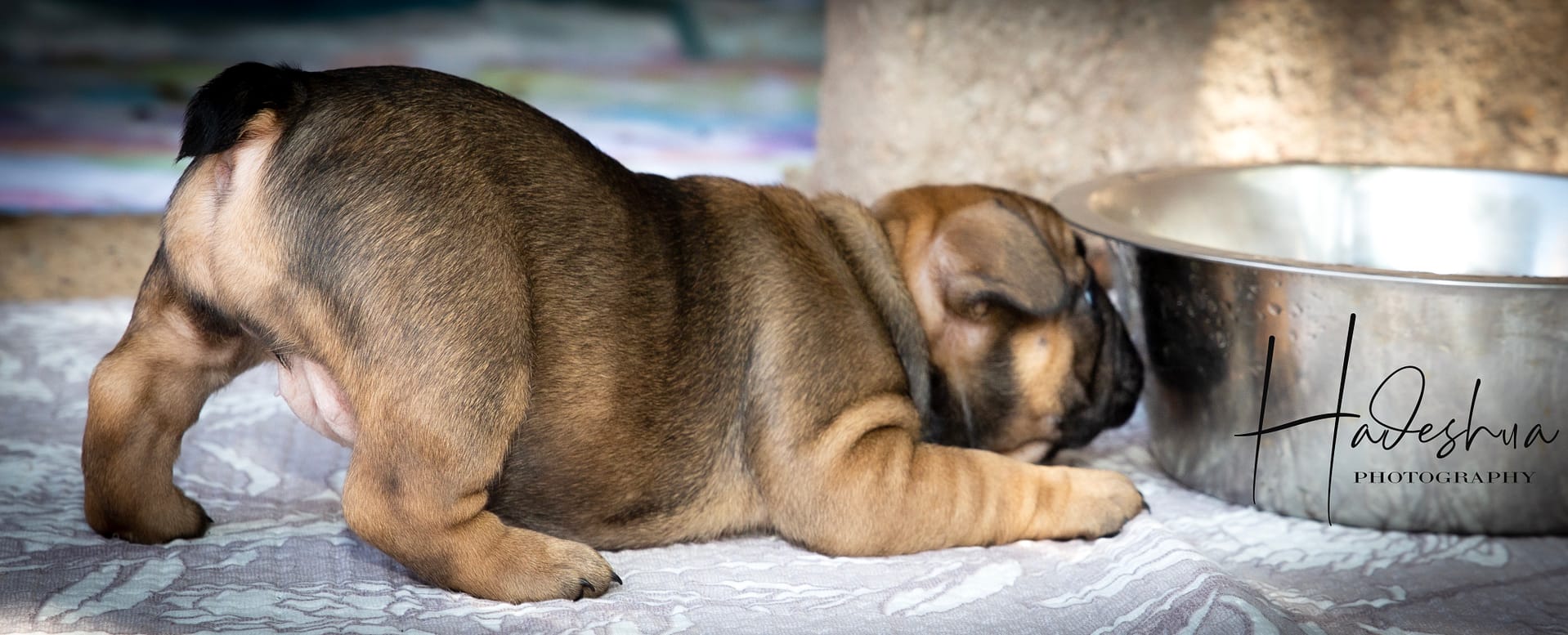With loads and loads of love! For the first few days to a week or two, mom stays with her babies next to our bed so we can attent to mom & pups during night time hours.  As soon as we feel comfortable leaving mom alone with her puppies, they are moved to the nursery which is a nice, quiet room inside our house. Moms are fed a special diet consisting of Hill’s or Royal Canin Puppy Food, freshly cooked chicken, eggs and sometimes RAW.  As soon as puppies start to wiggle around and show interest in food, they are moved to the second puppy-room which is more central in our home in order for the puppies to get used to new sounds as well as being pampered by everyone who walks by… because who can resist a puppy? Soon they start wiggling those little tails when they are aware of us. At 6 weeks, we introduce them to grass during day time hours where they can start sniffing and exploring while playing their hearts out. The puppies can leave us after they are properly weaned from their mom which is after 8 weeks of age.