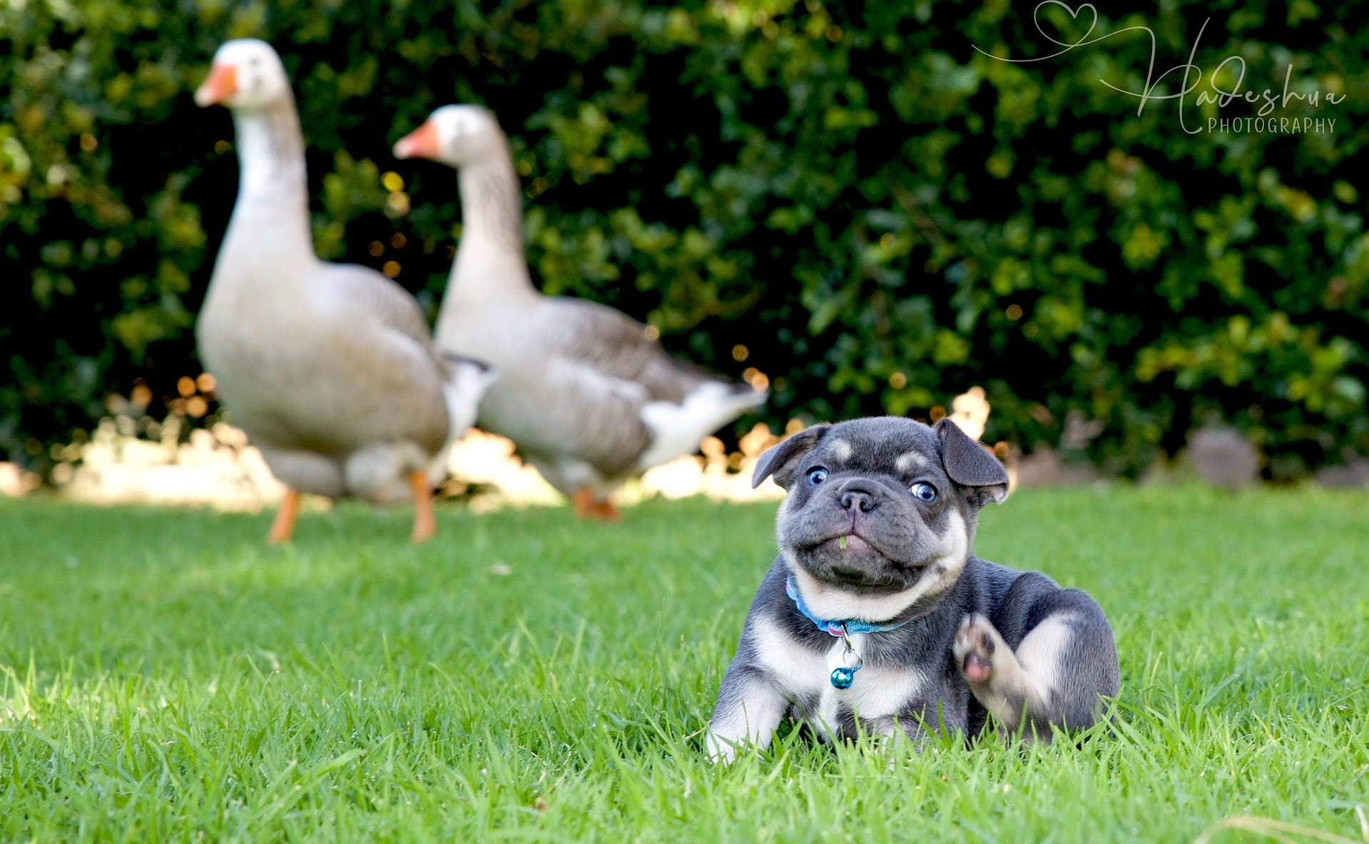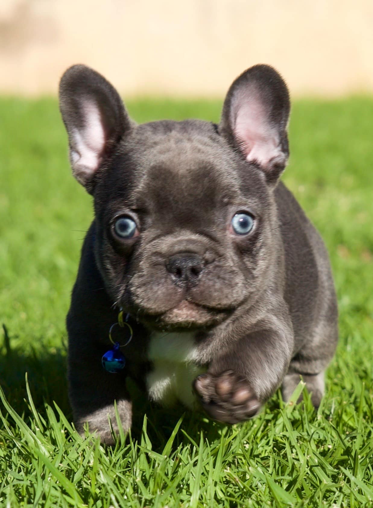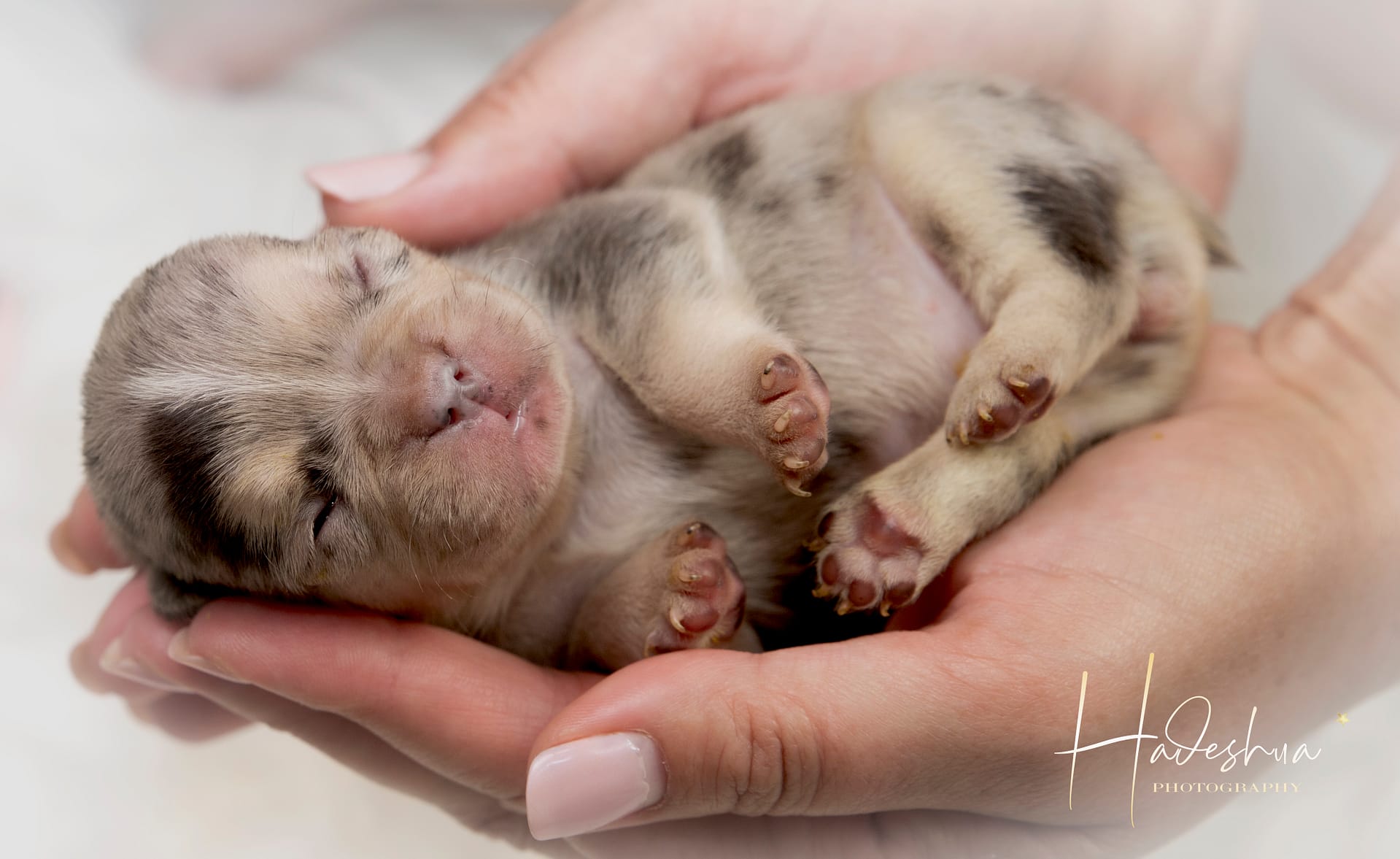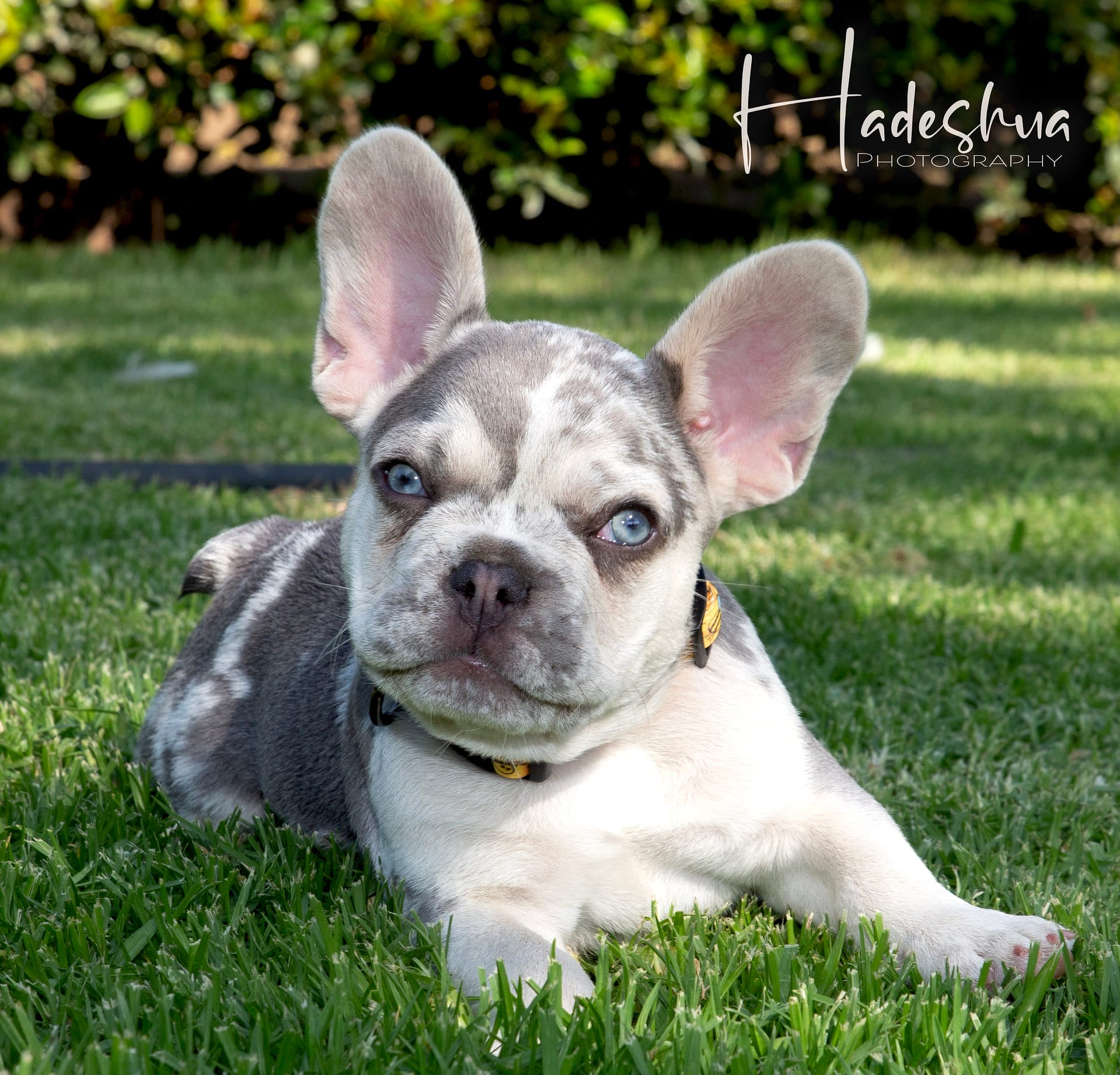 With loads and loads of love! For the first few days to a week or two, mom stays with her babies next to our bed so we can attent to mom & pups during night time hours.  As soon as we feel comfortable leaving mom alone with her puppies, they are moved to the nursery which is a nice, quiet room inside our house. Moms are fed a special diet consisting of Hill’s or Royal Canin Puppy Food, freshly cooked chicken, eggs and sometimes RAW.  As soon as puppies start to wiggle around and show interest in food, they are moved to the second puppy-room which is more central in our home in order for the puppies to get used to new sounds as well as being pampered by everyone who walks by… because who can resist a puppy? Soon they start wiggling those little tails when they are aware of us. At 6 weeks, we introduce them to grass during day time hours where they can start sniffing and exploring while playing their hearts out. The puppies can leave us after they are properly weaned from their mom which is after 8 weeks of age.